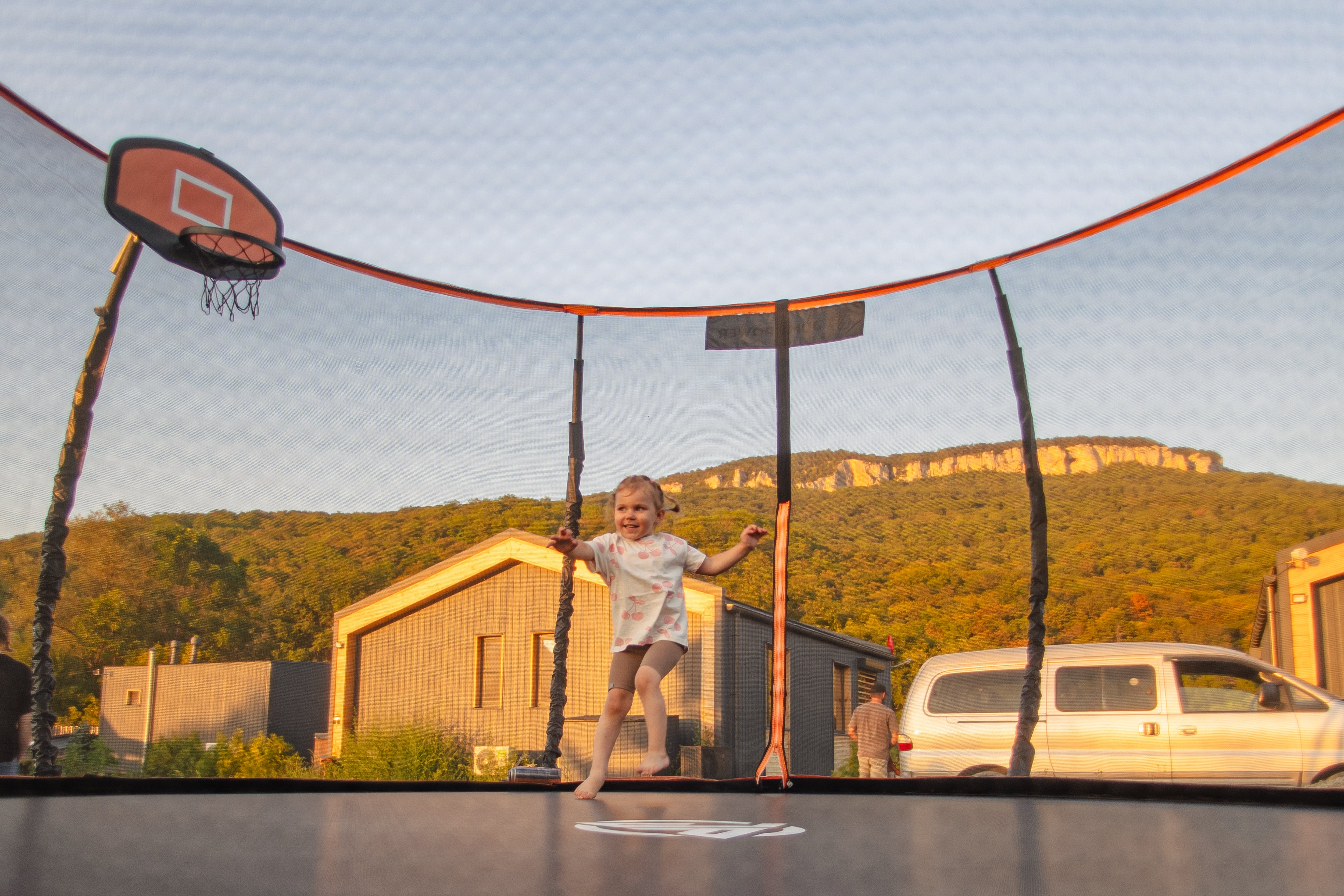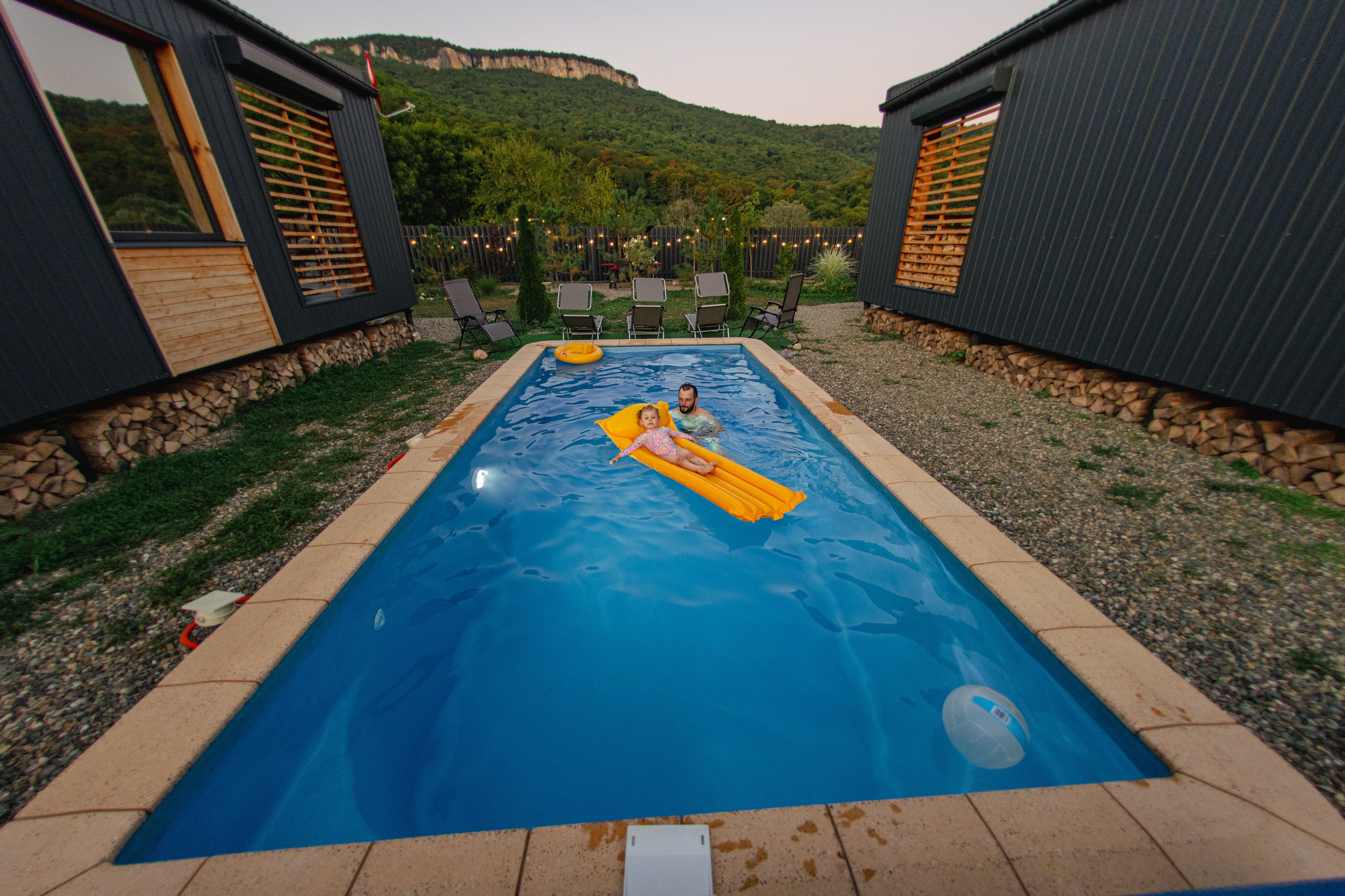 На территории кемпинга имеется подогреваемый сезонный бассейн, а также премиальные купели c аэромассажем и хромотерапией возле каждого питча (доп. услуга)