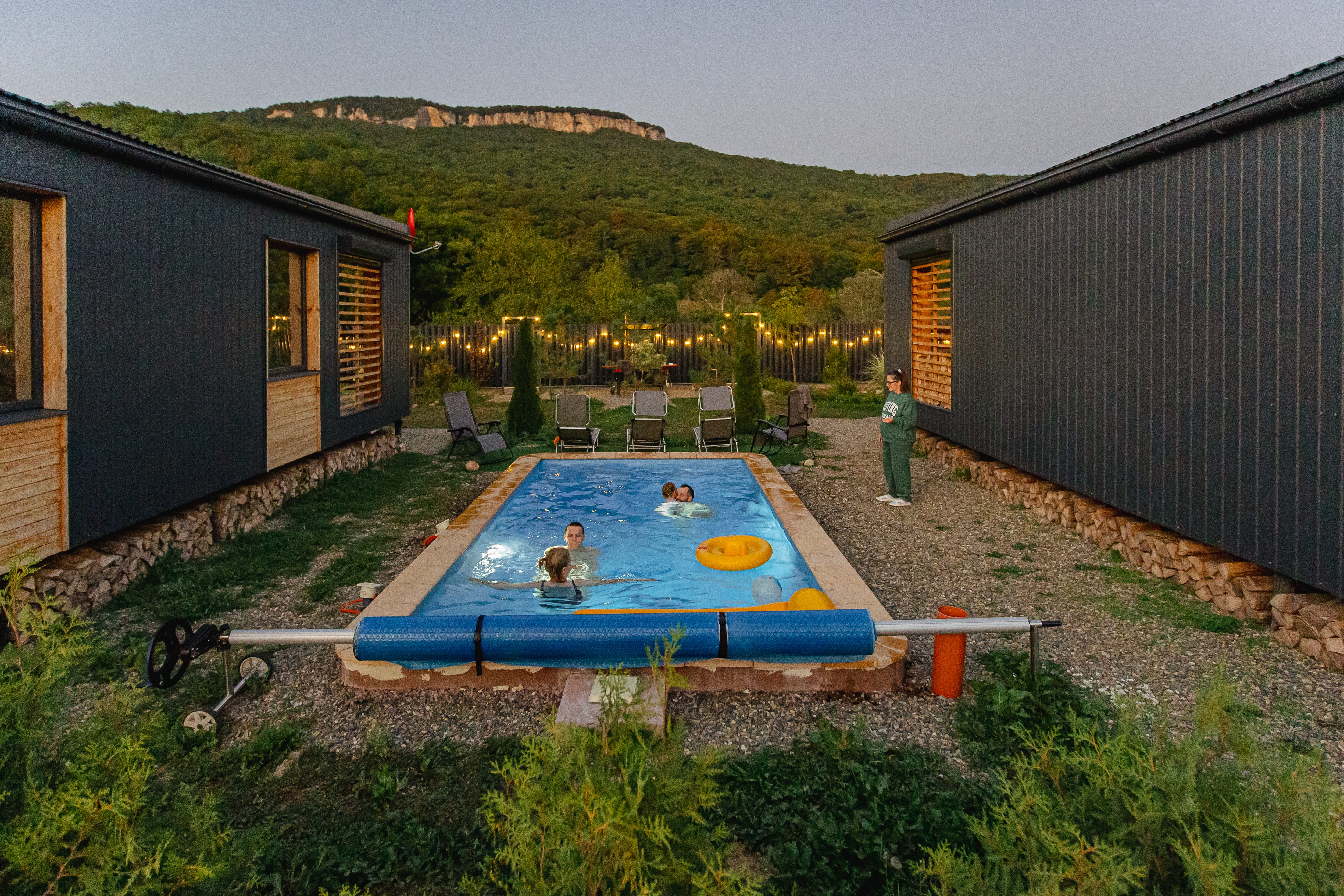 Каждый питч рассчитан на максимальное пребывание 6 человек и состоит из вместительной кухни-гостиной, санузла и двух уютных спален